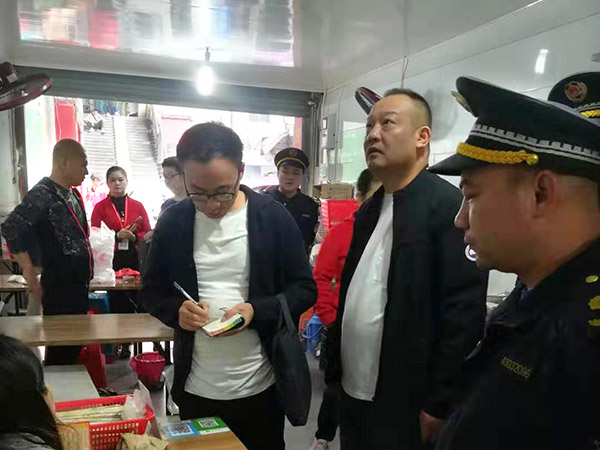 上門宣傳:公司配合社區、環保、城管、媒體對油煙超排企業進行上門督察